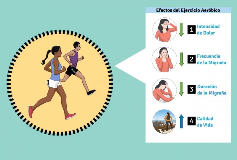 Un exhaustivo trabajo ha determinado que el ejercicio aeróbico puede disminuir la intensidad del dolor, la frecuencia y la duración de la migraña, además de aumentar la calidad de vida en pacientes con migraña
