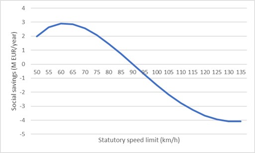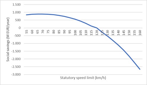 En el caso de las autovías, reducir el límite de velocidad supone una disminución en los costes sociales que compensa con creces el aumento de los tiempos de transporte. Aunque la medida se tomó para ahorrar combustible, el principal beneficio es la disminución en la accidentabilidad. Pese a ello, esta medida se implantó durante apenas unos meses.
